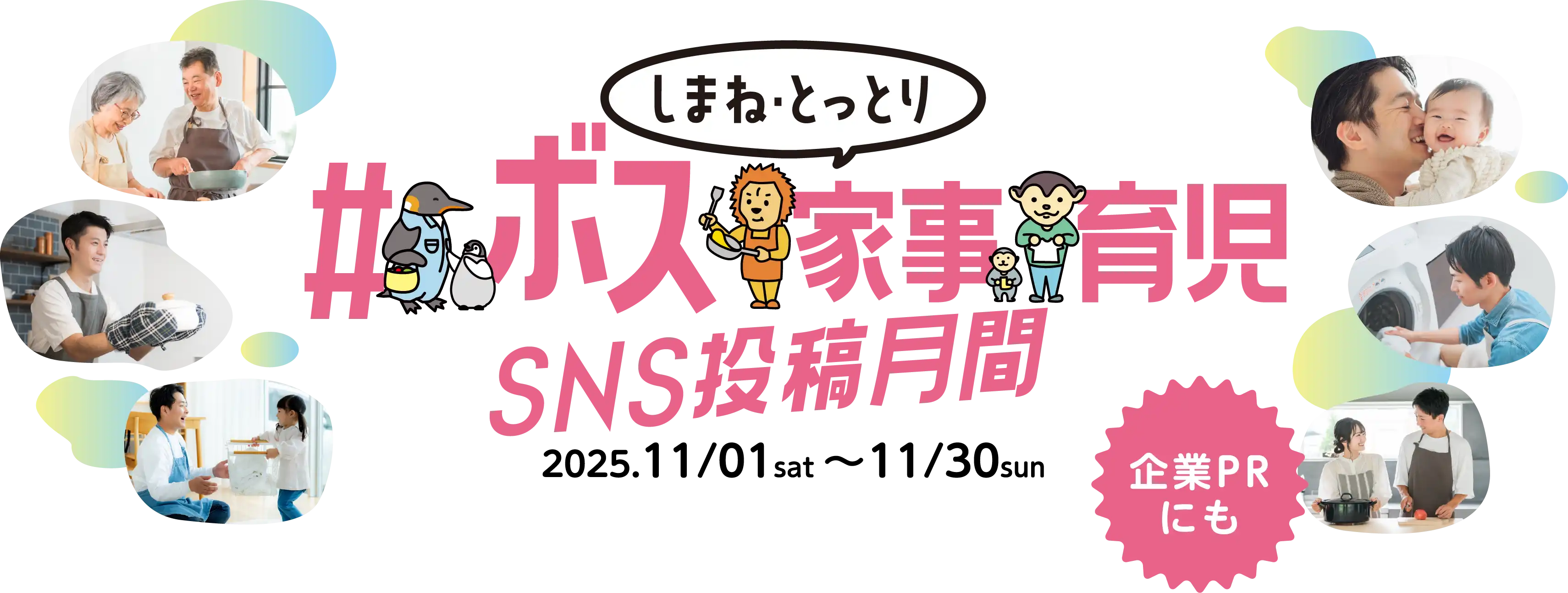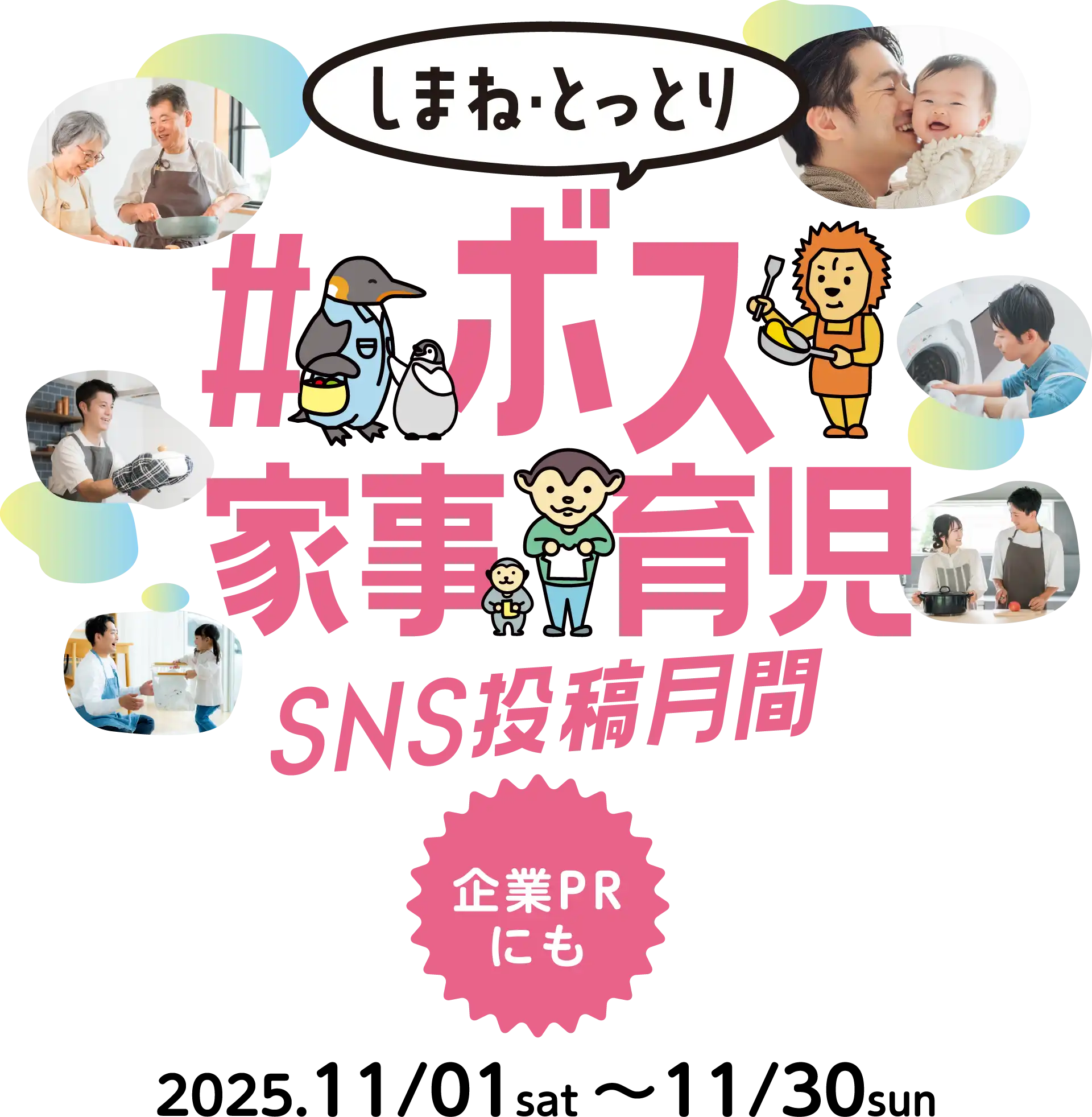 日頃の家事・育児の様子を「#ボス家事育児」をつけて投稿しませんか。